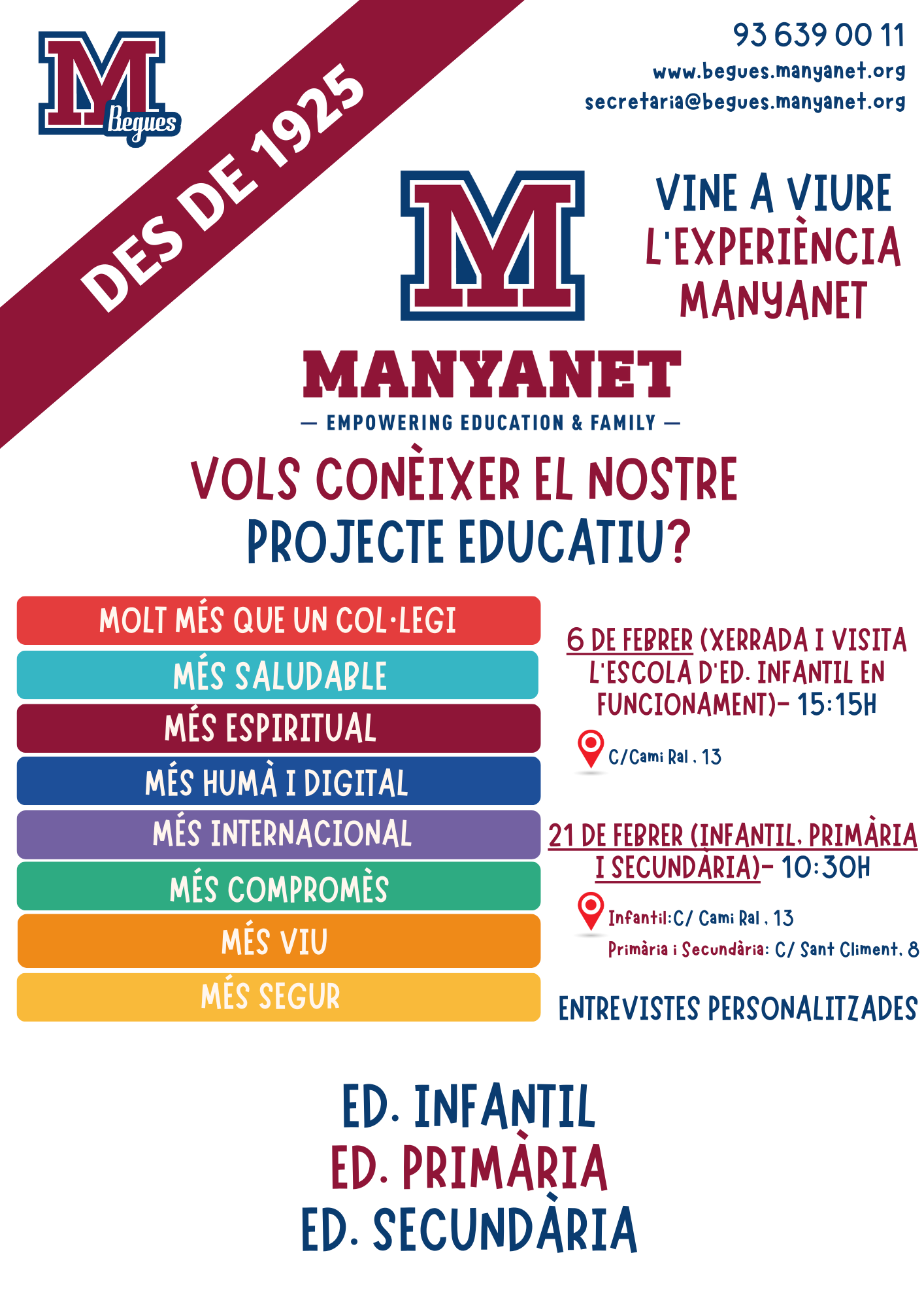 Amb les portes obertes, convidem a les futures famílies a viure l'experiència Manyanet. Durant les properes setmanes, moltes famílies s'aproparan a les escoles per escollir el millor centre pels seus fills i filles.